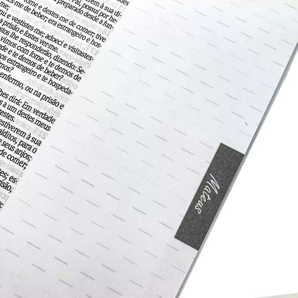 Com Pautas para Anotações, tudo aquilo que Deus falar ao seu coração pode ser anotado no mesmo instante da leitura, ou criar belas ilustrações, formando um arquivo de experiências espirituais que estará à disposição para sempre.